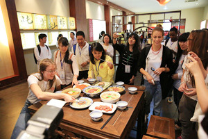 6月24日“海外名校走進金華古村落”活動第一季的42名來自世界各國名校教授、學生乘坐著BRT專車,參觀了金字建設(shè)的中國火腿博覽館和世界火腿博覽館,了解傳承千年的中國火腿文化。想了解現(xiàn)代與傳統(tǒng)交融的金華,金華火腿自然是不可或缺的元素,在金字總部的國內(nèi)首個中國火腿博覽館,學生們深入地了解了金華火腿文化的千年歷史傳承。在中國火腿博覽館內(nèi),記錄了金華火腿從唐朝起就聞名天下的歷史淵源……